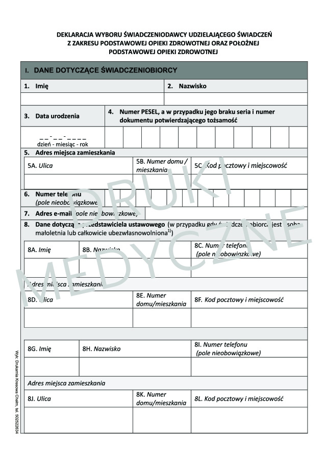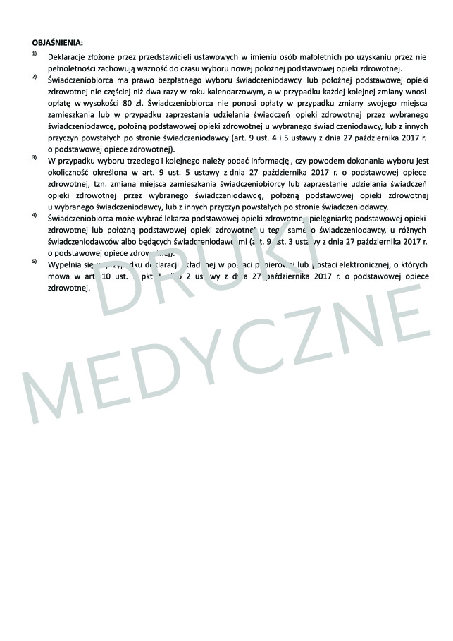 Deklaracja wyboru świadczeniodawcy oraz położnej POZ – druk medyczny