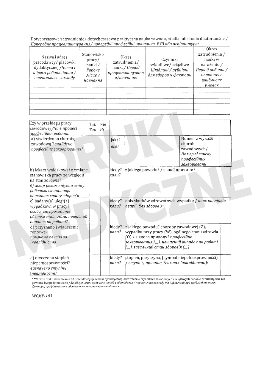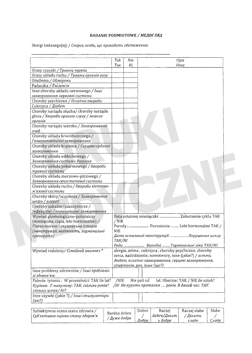 Dużą zaletą jest wersja dwujęzyczna (polsko-ukraińska), która ułatwia pracę z pracownikami zagranicznymi. Formularz pozwala na sprawne przeprowadzenie badania zarówno w przypadku pracowników fizycznych, jak i osób uczących się lub odbywających praktyki zawodowe.