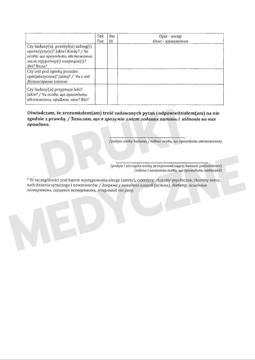 Na końcu dokumentacji odpowiednio przygotowana karta badania profilaktycznego druk stanowi standard w każdej placówce medycznej i zakładzie pracy.