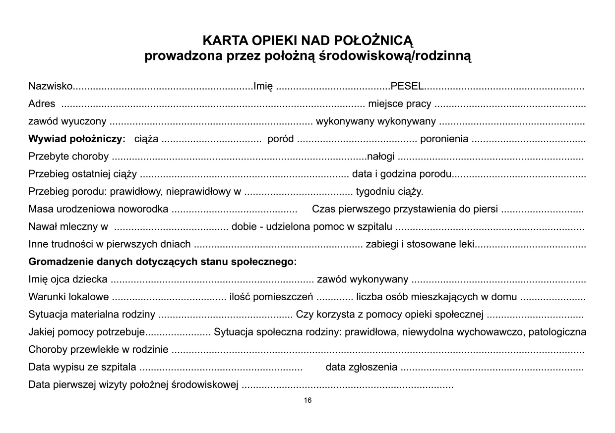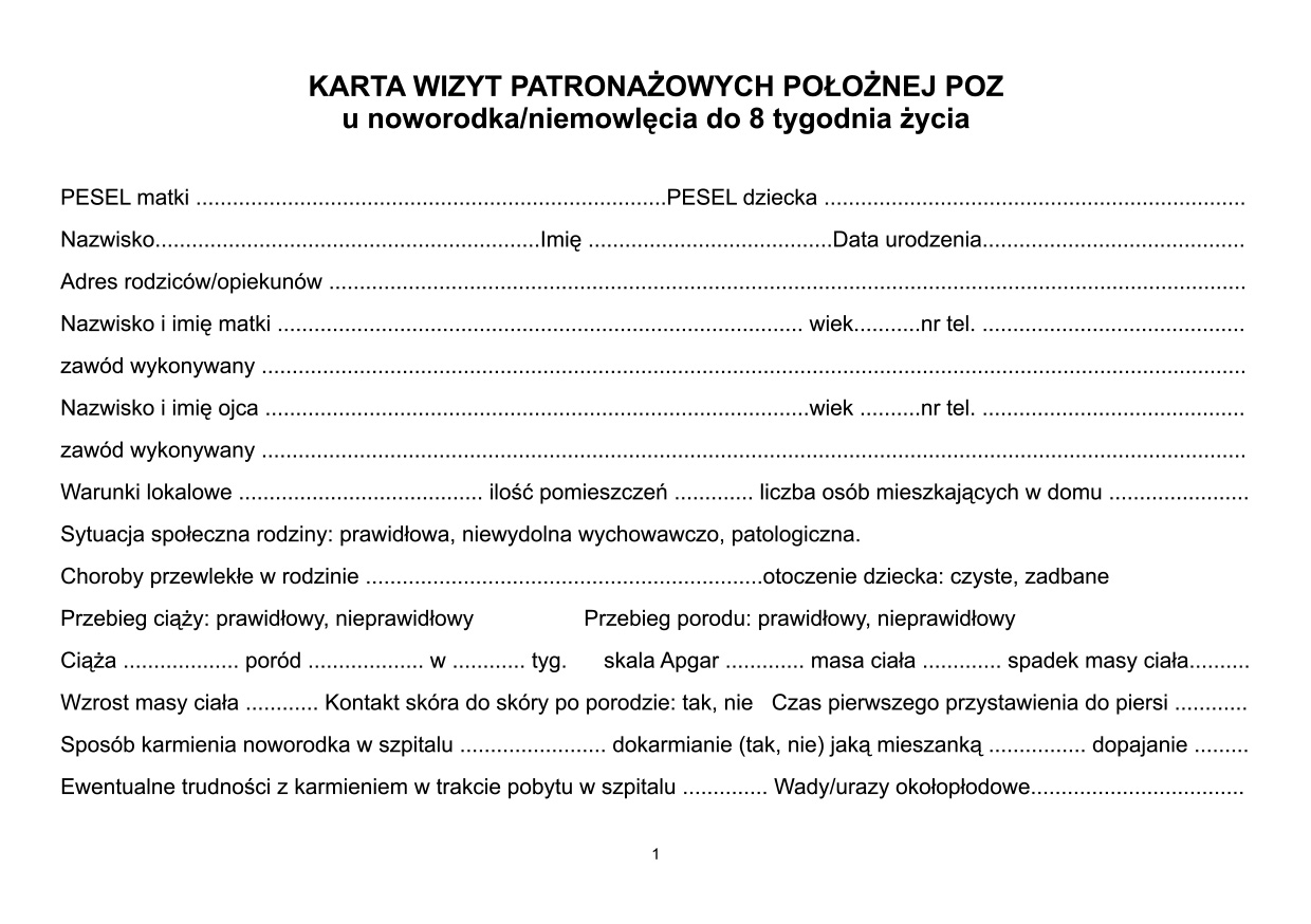 • dokumentacja wizyt patronażowych noworodka