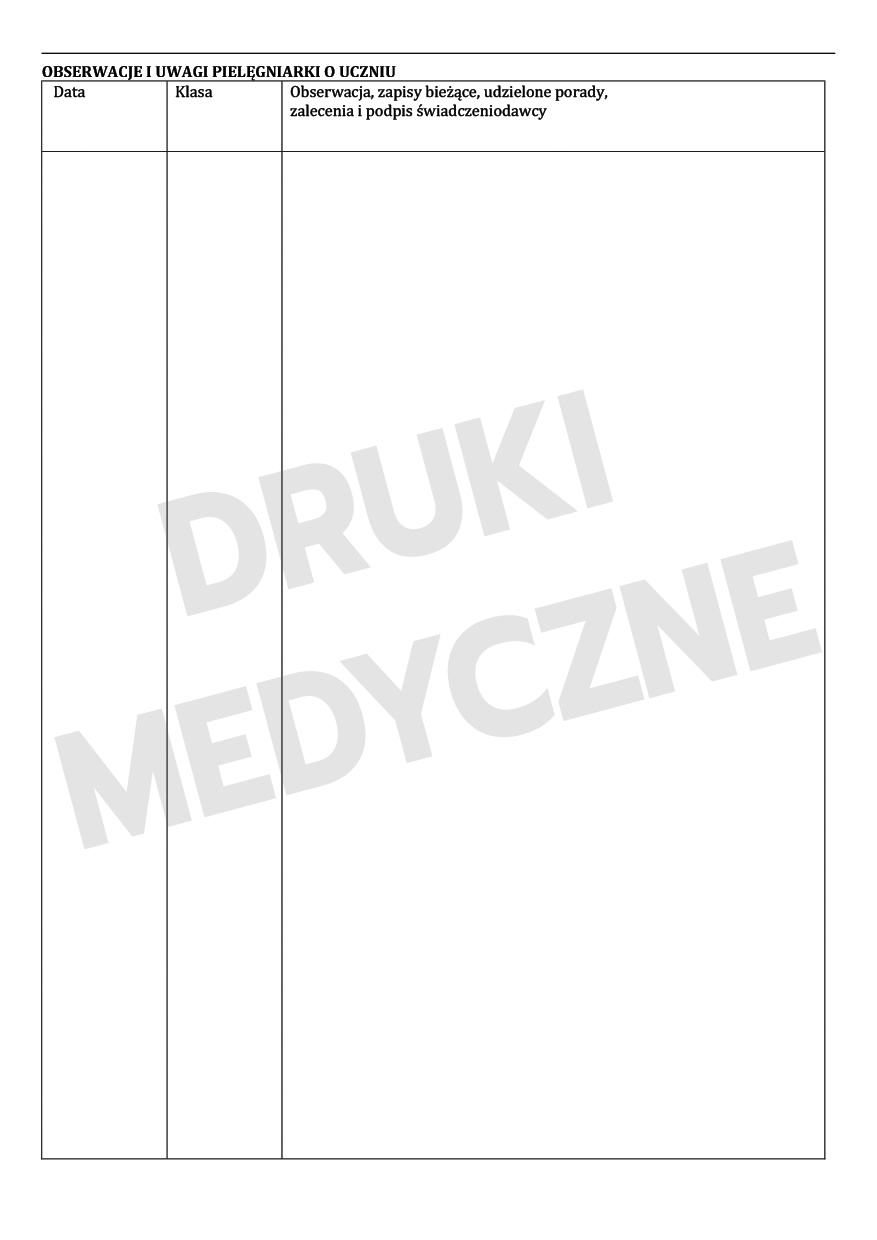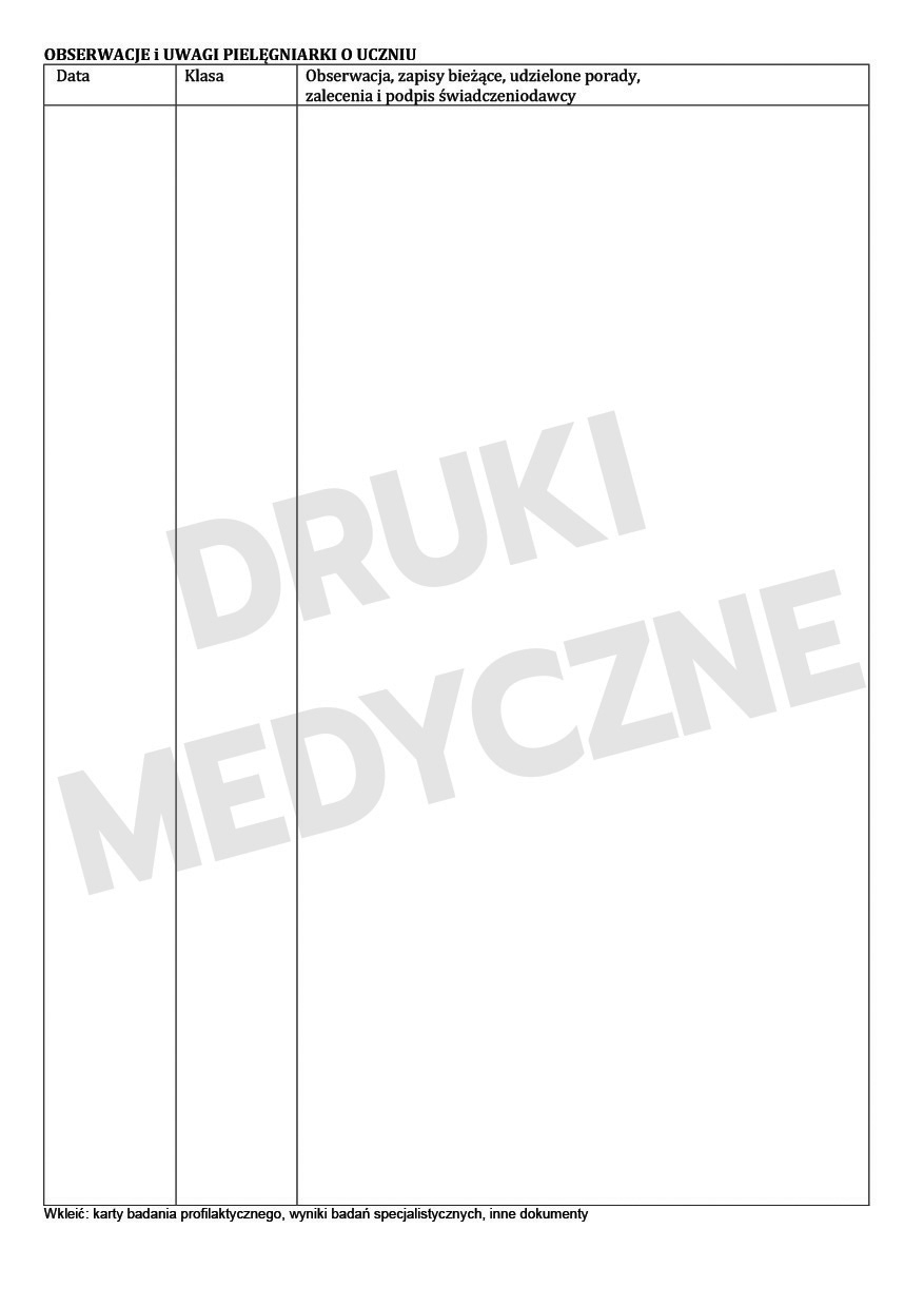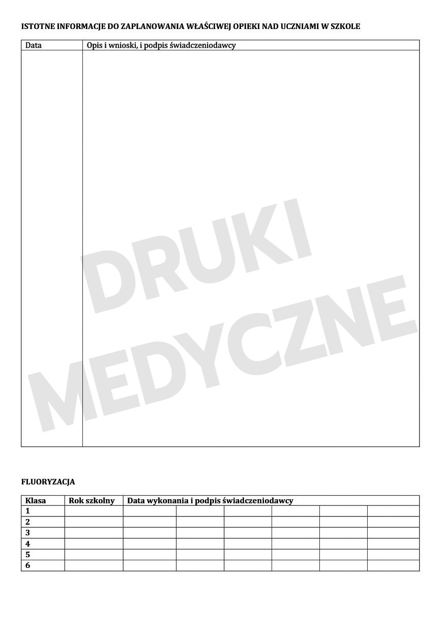 Druk jest zgodny z praktyką dokumentacyjną w medycynie szkolnej.
